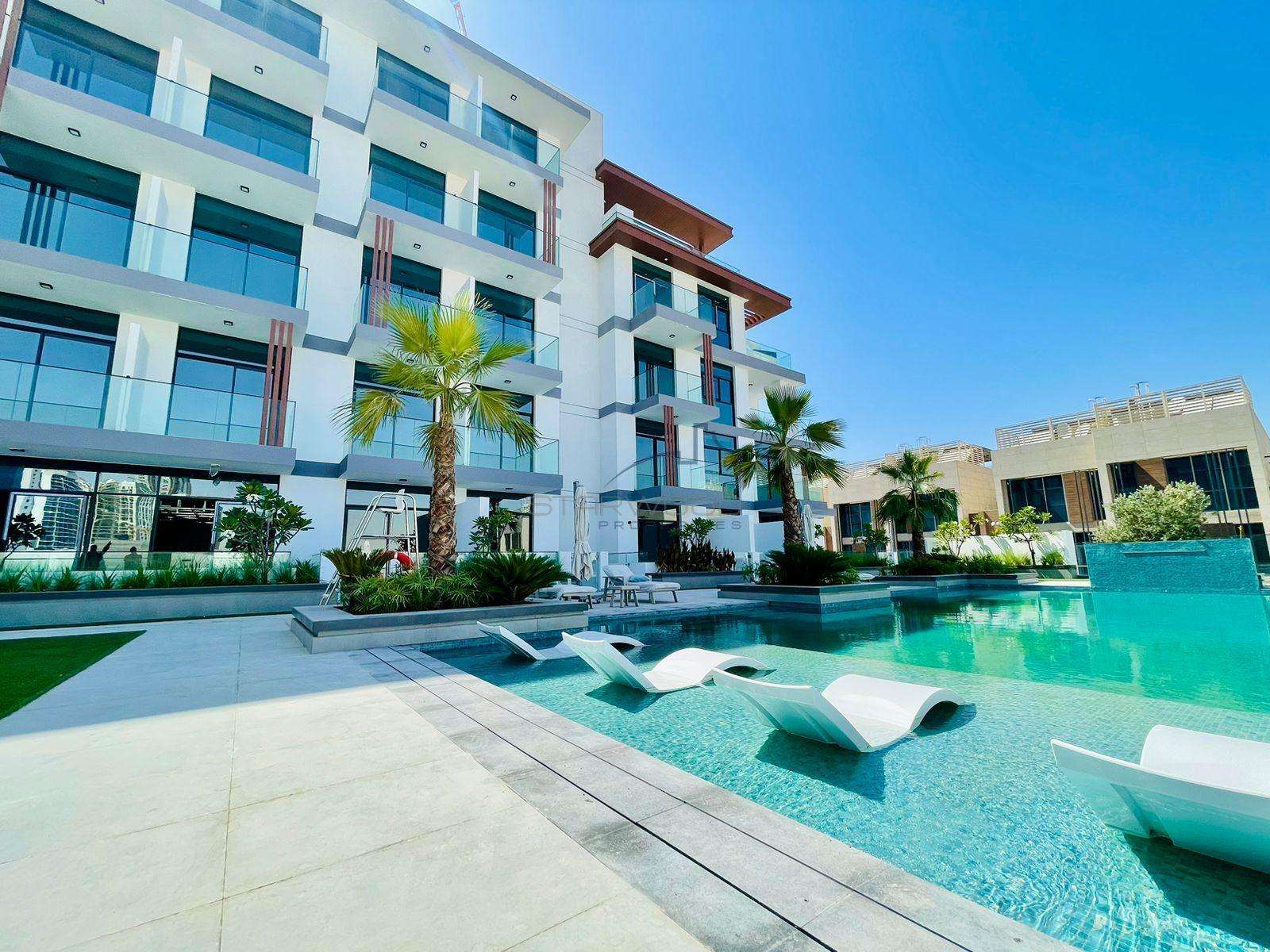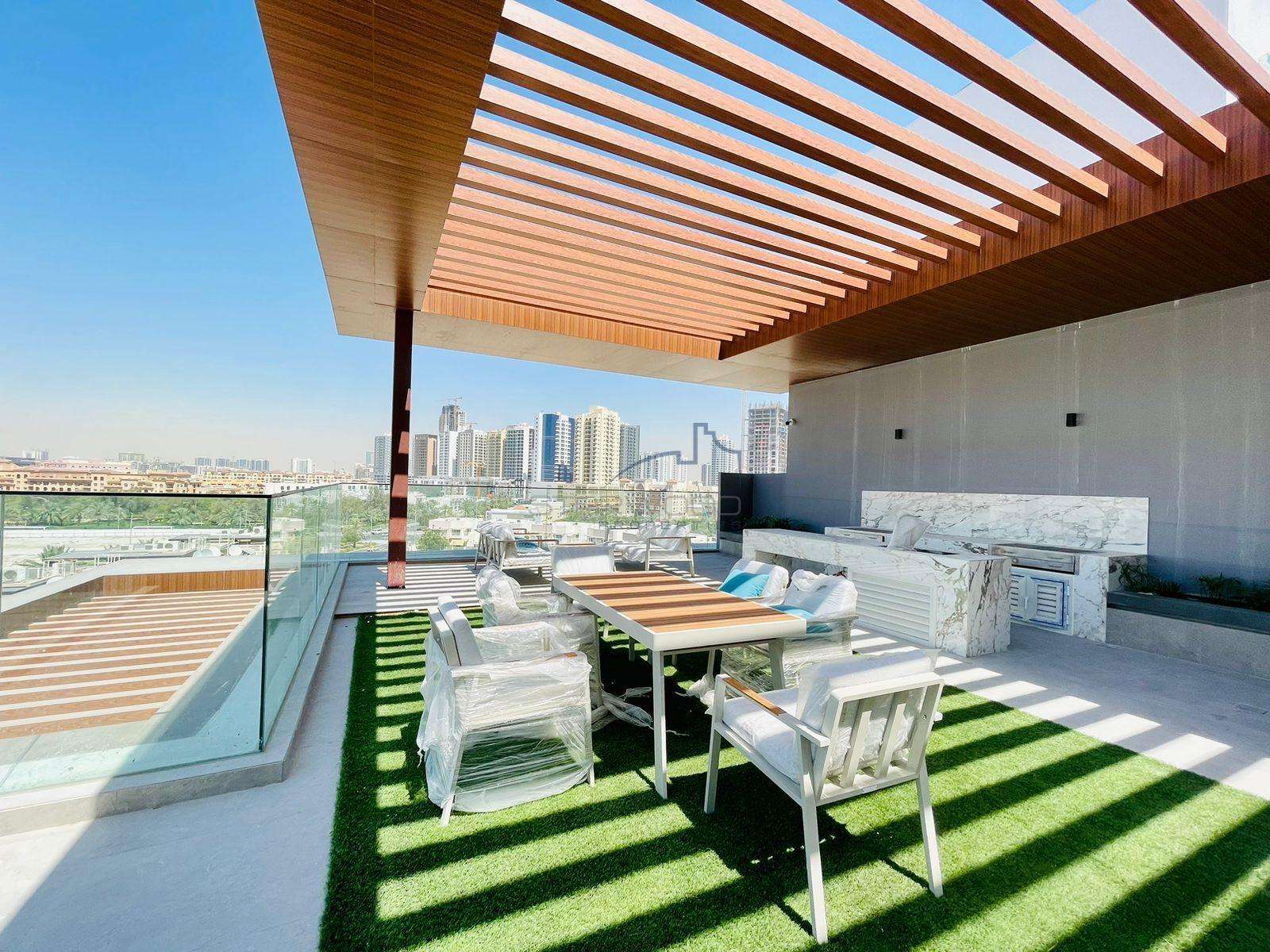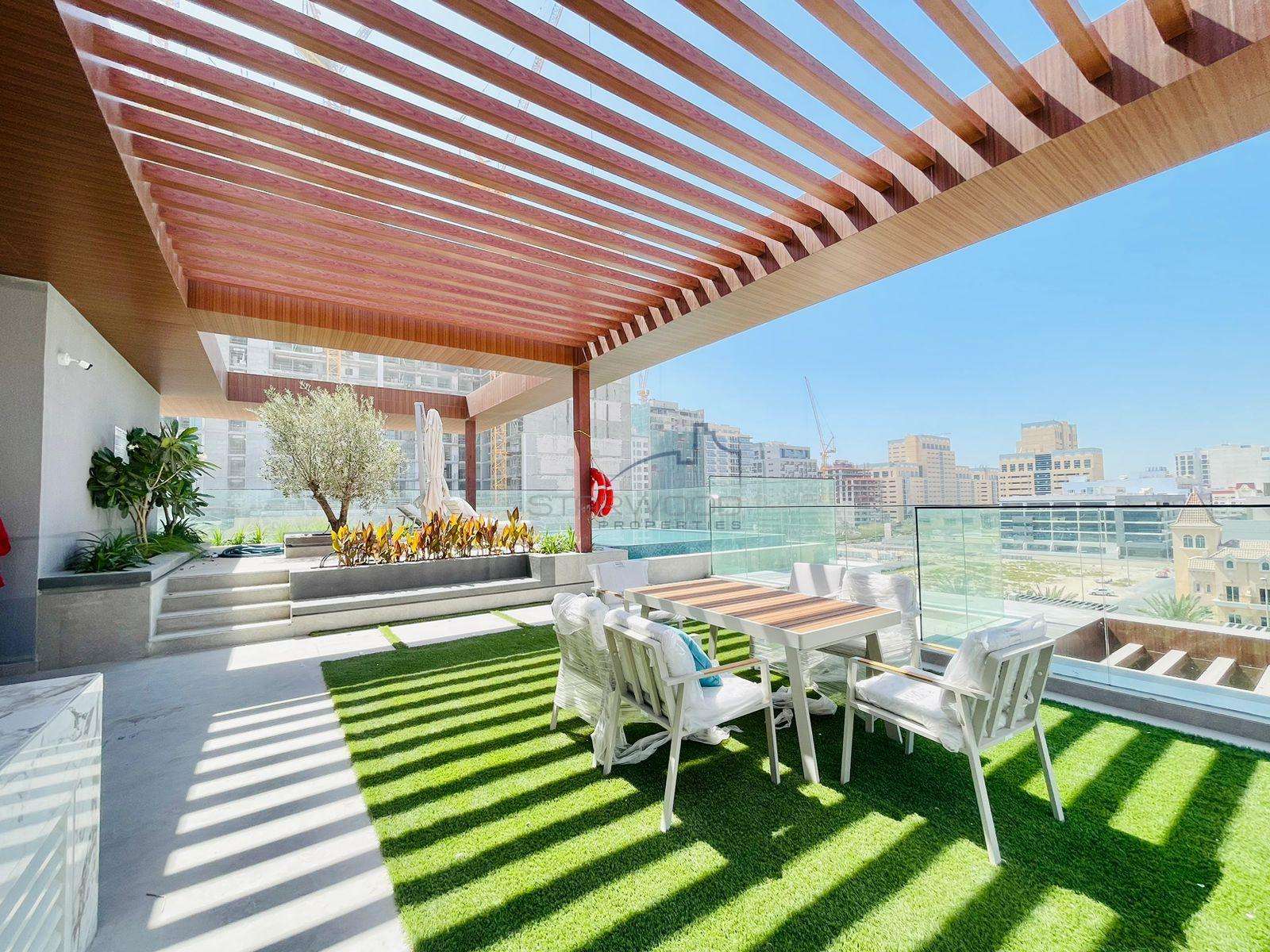 Welcome to Oxford Terraces at JVC, where luxury meets lifestyle in every detail. Our brand new boutique apartment building in Jumeirah Village Circle offers exquisite spaces designed for your comfort and elegance. Experience the grandeur of a double-height lobby, stunning cabanas and decks with breathtaking views, a rooftop adult pool for relaxation, and a serene lush green garden area.