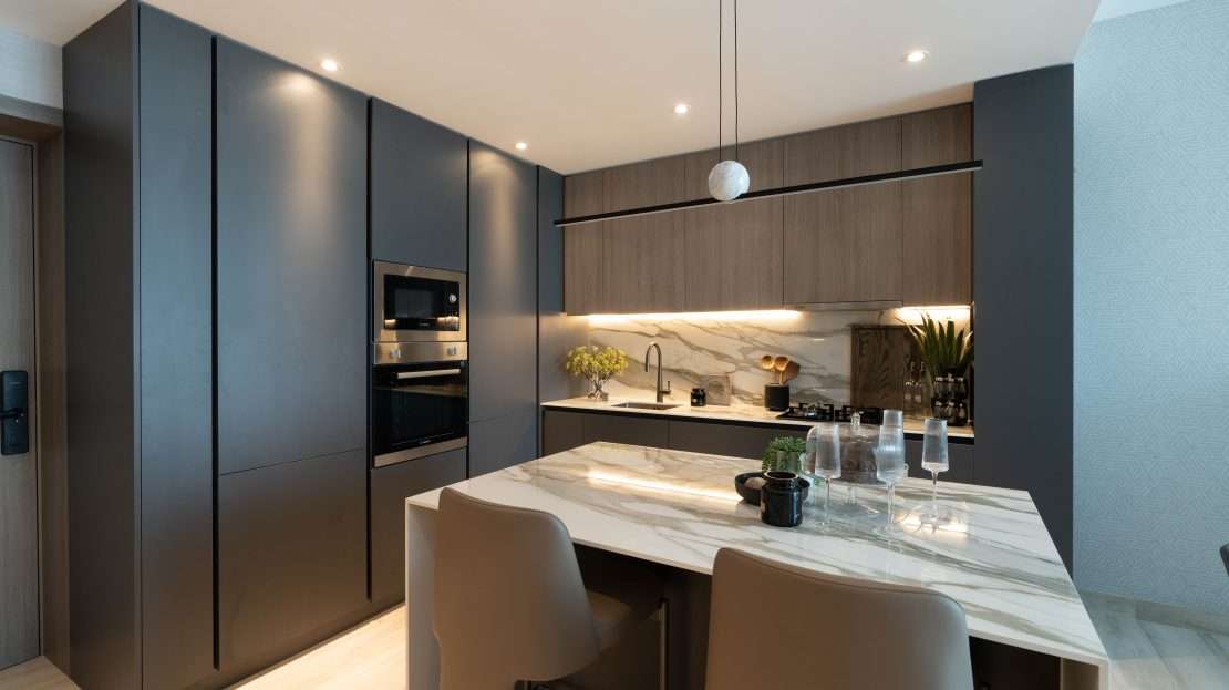 * High end finishes with full kitchen appliances.