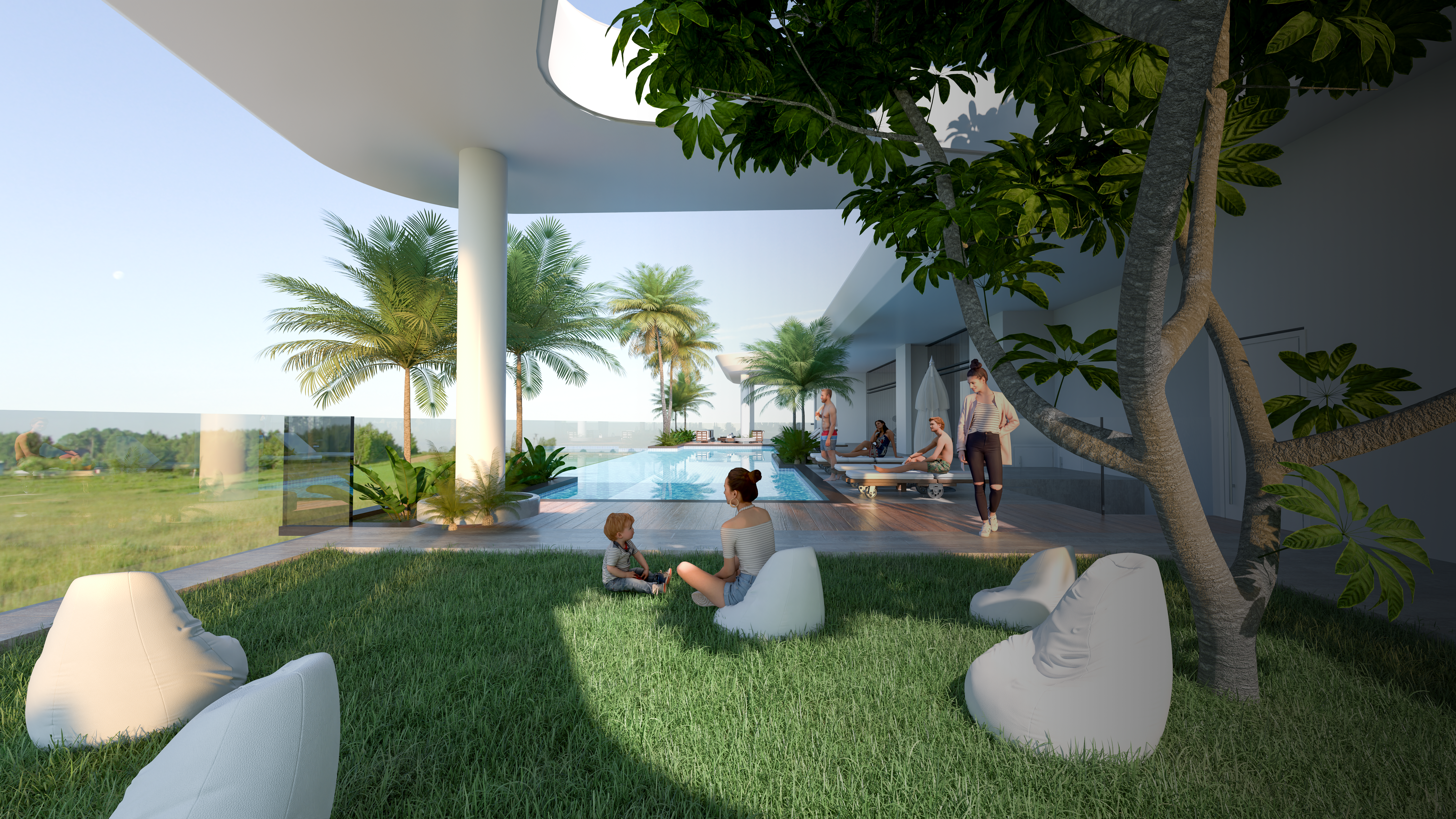 * Ground floor amenities: Resort type swimming pool, padel tennis court, Cabanas and sitting areas.